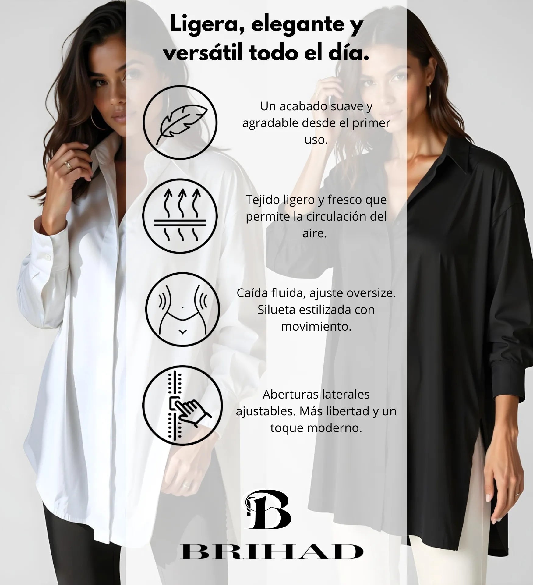 - Sensación: Tejido ligero, de caída fluida y tacto suave.