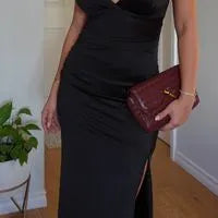 Sí, gracias a su tela ligera en satén y su diseño fluido, el vestido es cómodo y permite libertad de movimiento, ideal para disfrutar toda la noche sin perder estilo.